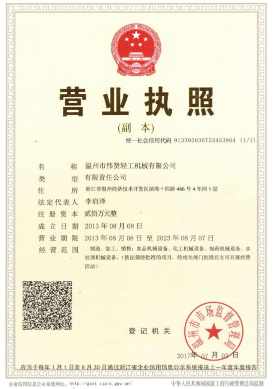 溫州市偉賢輕工機(jī)械有限公司 地址:浙江溫州濱海工業(yè)園區(qū)十四路466號(hào) 電話:0577-86374818 86899137 86899139 傳真:0577-86899138 手機(jī)/微信:13634277318 18858825318 QQ:243687277 郵箱:lzjxsb@163c.com 阿里旺鋪:lzjxsb.1688.com www.chinaweixian.com www.sanya-access.com