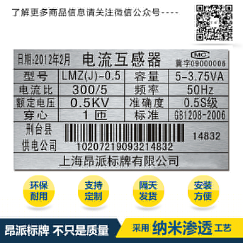 電網(wǎng)條碼銘牌標(biāo)牌 時間:2018-05-21 16:06:08 分類:金屬條碼 瀏覽:次 關(guān)于金屬條碼獨(dú)特點(diǎn)-以及-質(zhì)量優(yōu)勢: 金屬二維碼---進(jìn)口鋁板---高科技德國印刷技術(shù)---耐摩擦,耐溶劑,耐高溫,抗摩擦,耐紫外線,耐化學(xué)品性,耐腐蝕性,滲透印刷技術(shù)做出來的金屬二維碼使用壽命久不易掉色,金屬二維碼識別率快,掃描識別率高。 分享收藏: 上一個: 郵局運(yùn)輸條碼銘牌標(biāo)牌 下一個: 金屬條形碼牌銘牌標(biāo)牌 相關(guān)產(chǎn)品 感應(yīng)器鋁合金條形碼銘牌標(biāo)牌 工程系統(tǒng)管理使用金屬條形碼銘牌標(biāo) 物流管理鋁制條形碼銘牌標(biāo)牌 倉庫管理鋁制條形碼銘牌標(biāo)牌 流水號鋁制條形碼銘牌標(biāo)牌 序列號鋁制條形碼銘牌標(biāo)牌