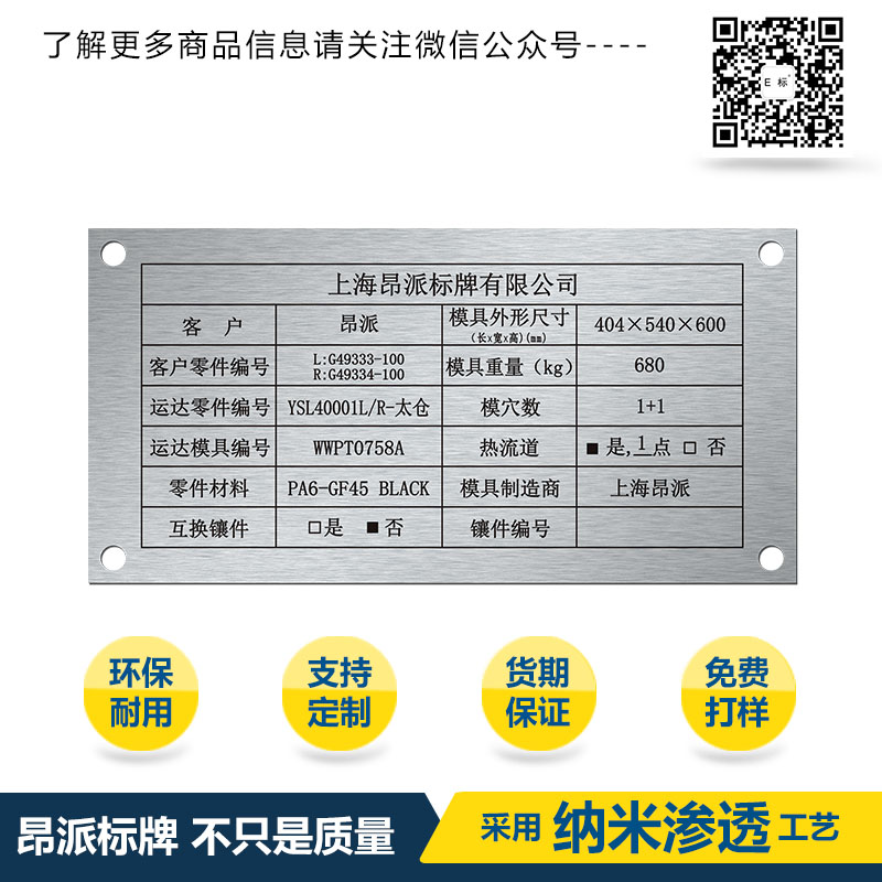 領(lǐng)先的供應(yīng)商之一。上海昂派標(biāo)牌生產(chǎn)的銘牌工藝是采用特種印刷,處理工序復(fù)雜,難于防造,能承