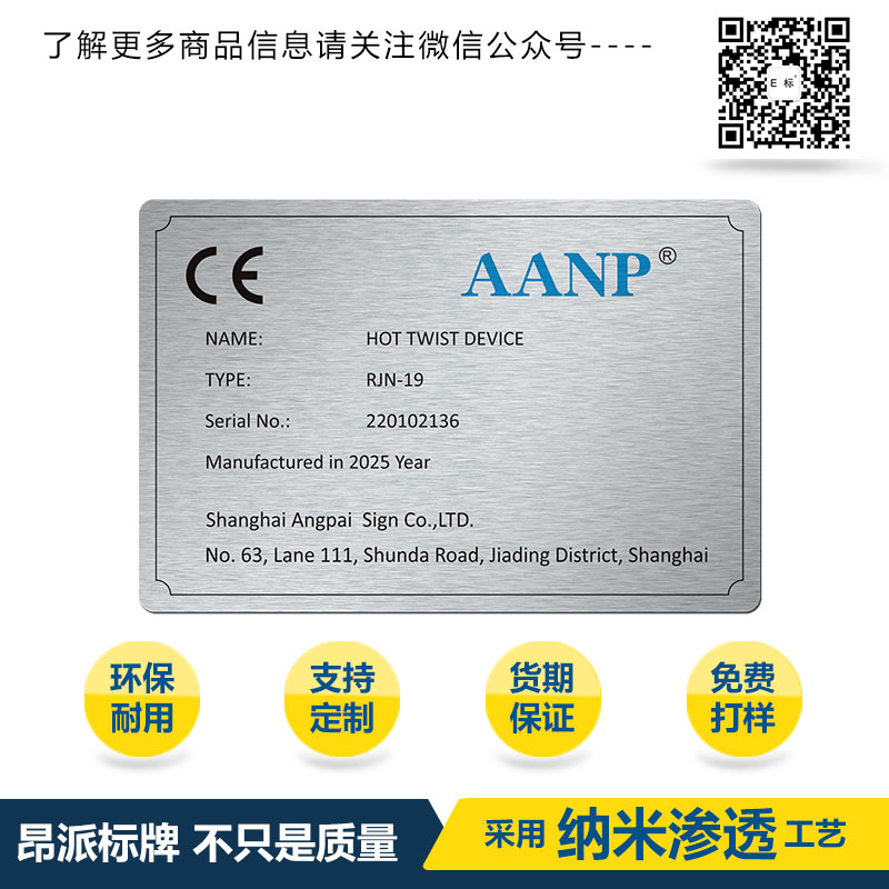 自動化設備鋁銘牌標牌 時間:2025-05-07 10:29:37 分類:陽極氧化銘牌 瀏覽:次 我司長期備有進口的生產原材料,和一批高素質的專業(yè)生產隊伍,細致精密的操作流程及現代化的管理體系,對你的需求我們有絕對的信心做好。昂派標牌”將不斷努力創(chuàng)造出更高品質的銘牌,為用戶提供更佳服務,努力做到你最滿意的合作伙伴。 分享收藏: 上一個: 設備信息陽極氧化銘牌標牌 下一個: 陽極氧化指示小銘牌標牌 相關案例